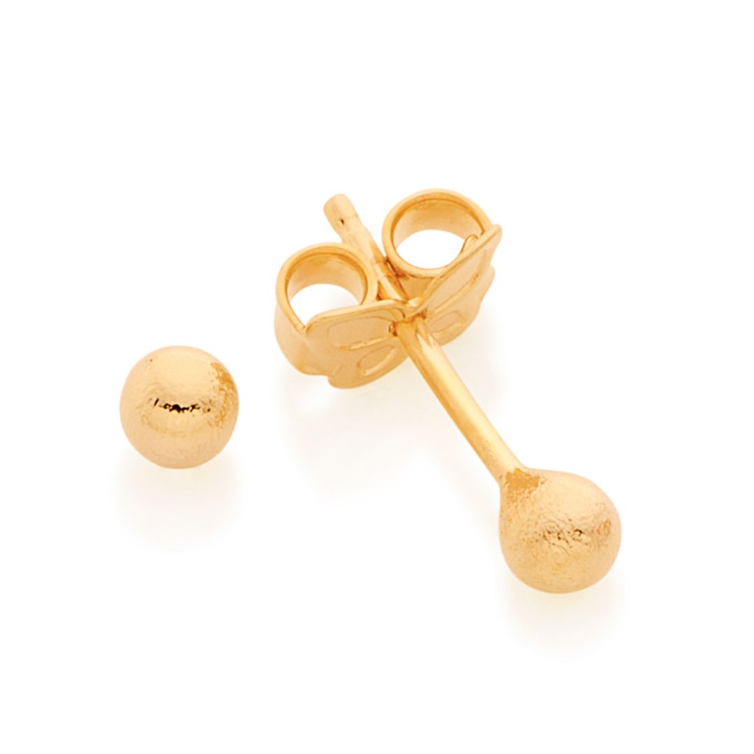 Brinco Infantil formado por bola fosca pequena, medindo 3 mm de diâmetro.