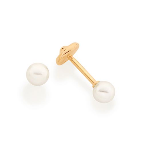 Brinco solitário de pérola sintética pequeno, de 0,4 mm de diâmetro. Pode ser usado por bebês, crianças ou segundo furo.