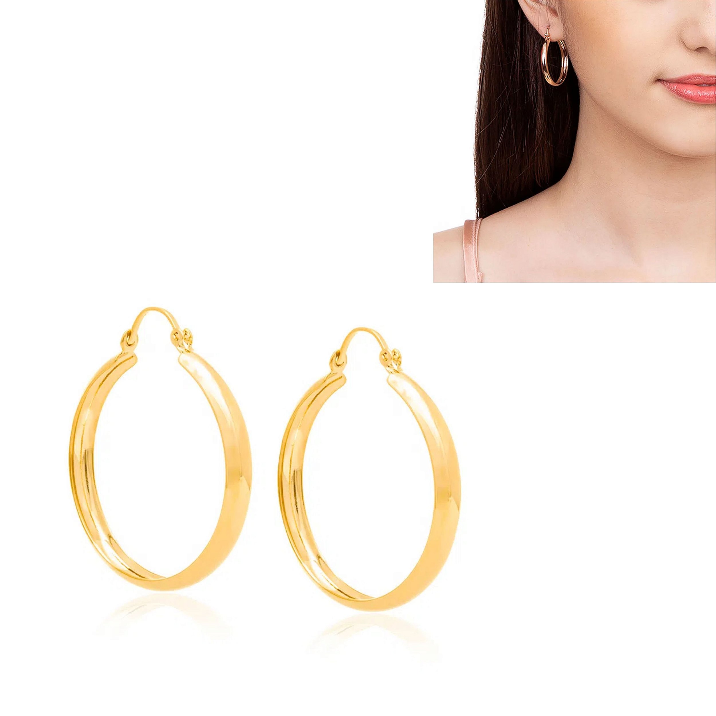 Brinco argola lisa no formato redondo, medindo 2,8 cm de diâmetro.