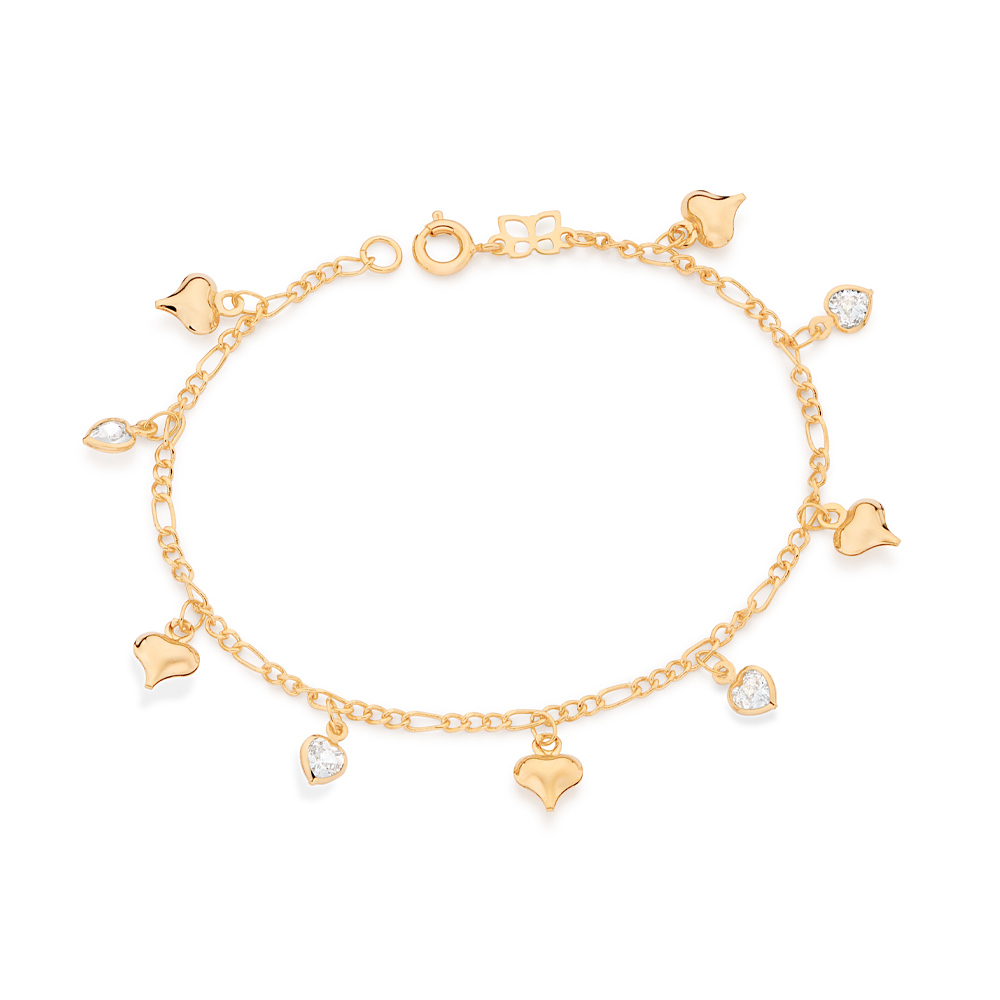 Pulseira Formada Por Fio Elo Laminado Composto Por Coracoes E 4 Zirconias De 5,00Mm (A Quantidade De Zirconias Pode Variar).Med. 18 Cm